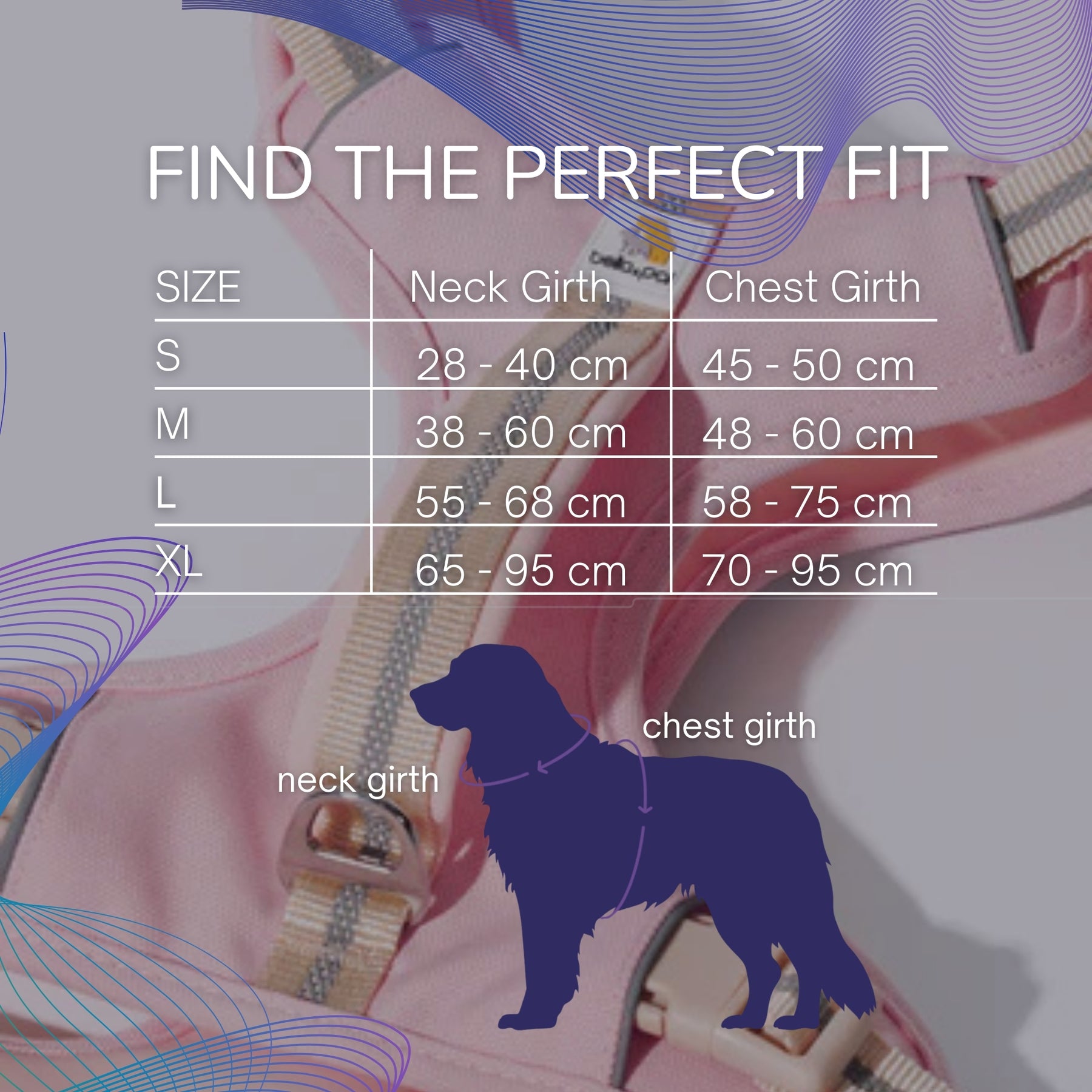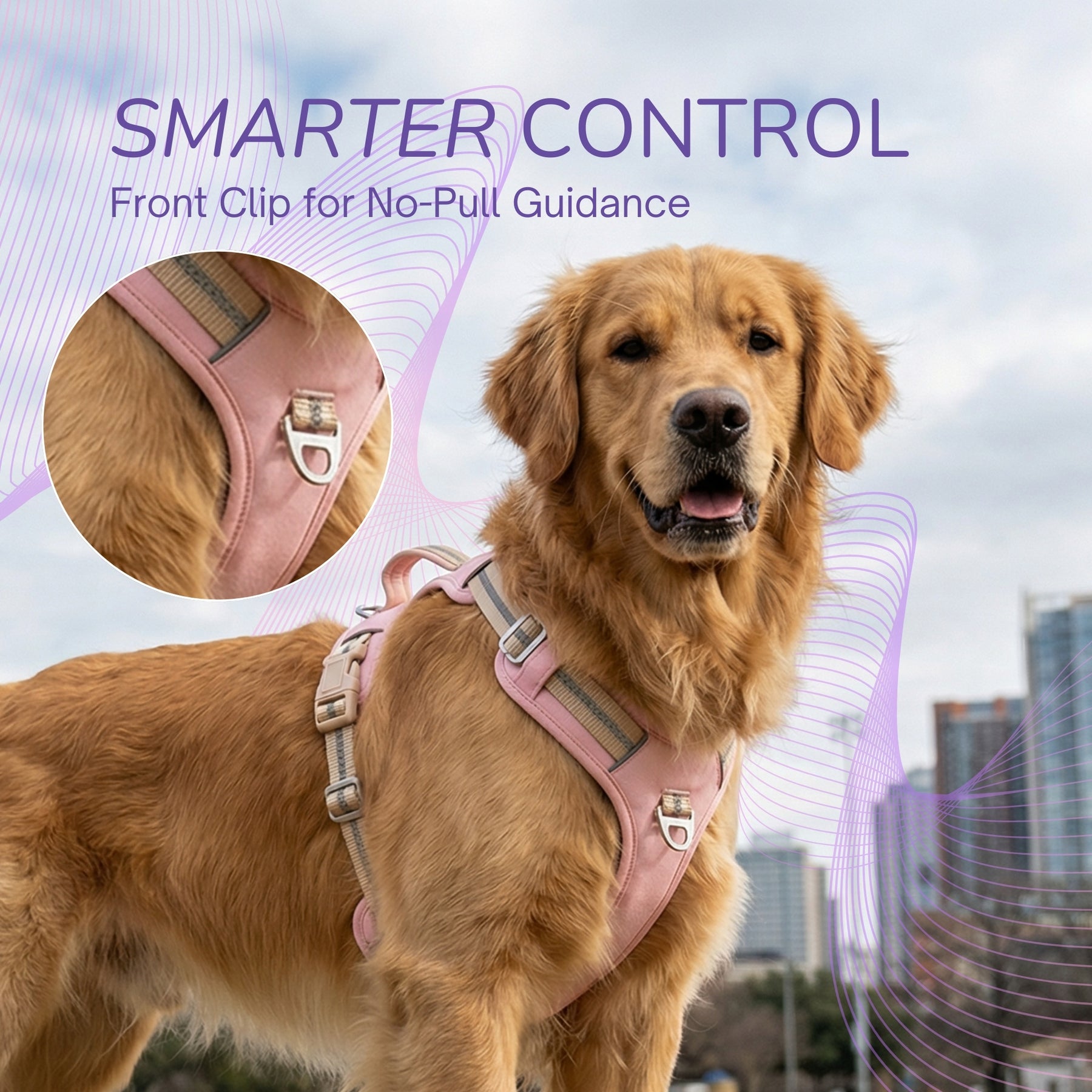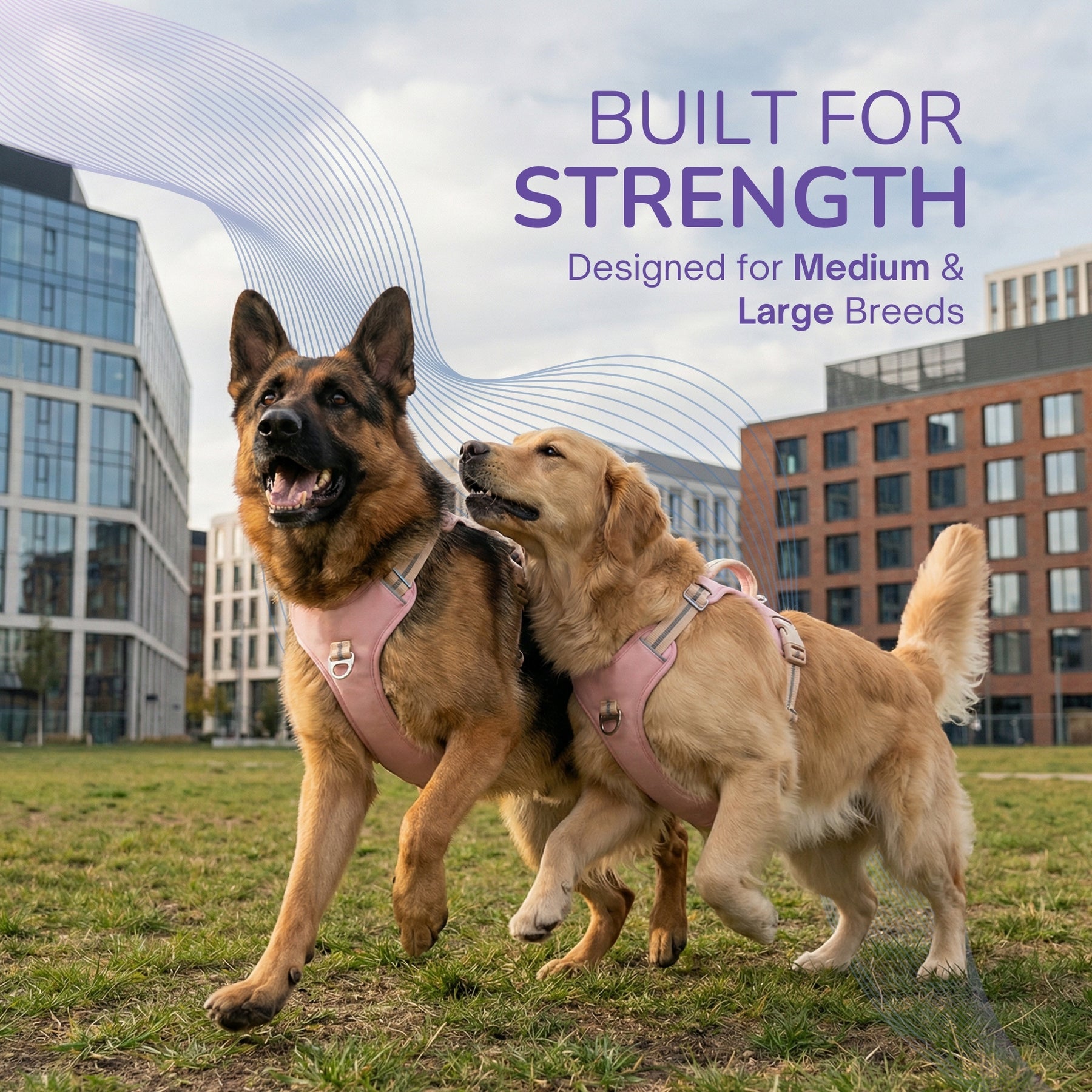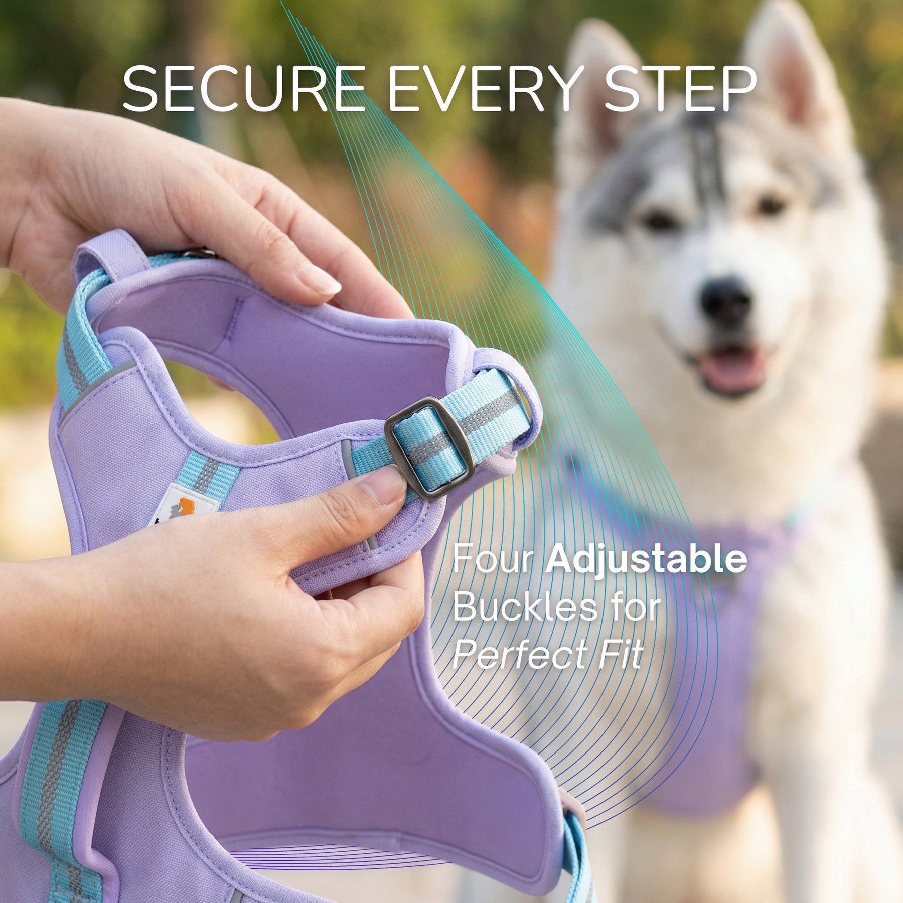 可調校、穩固貼合: 四個可調式插扣設計,特別適合德國牧羊犬、金毛尋回犬等中大型犬種。