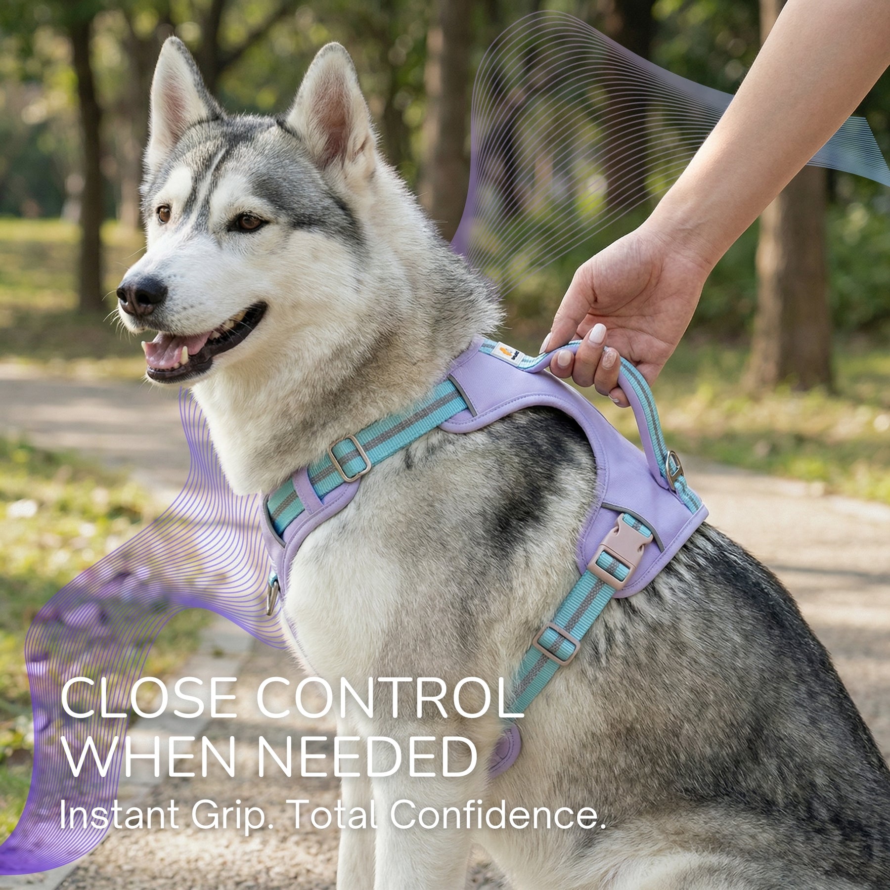 更易控制、減少拉扯: 頂部手柄方便即時控制;配兩個金屬 D 形環,可用於日常散步或防拉扯訓練。