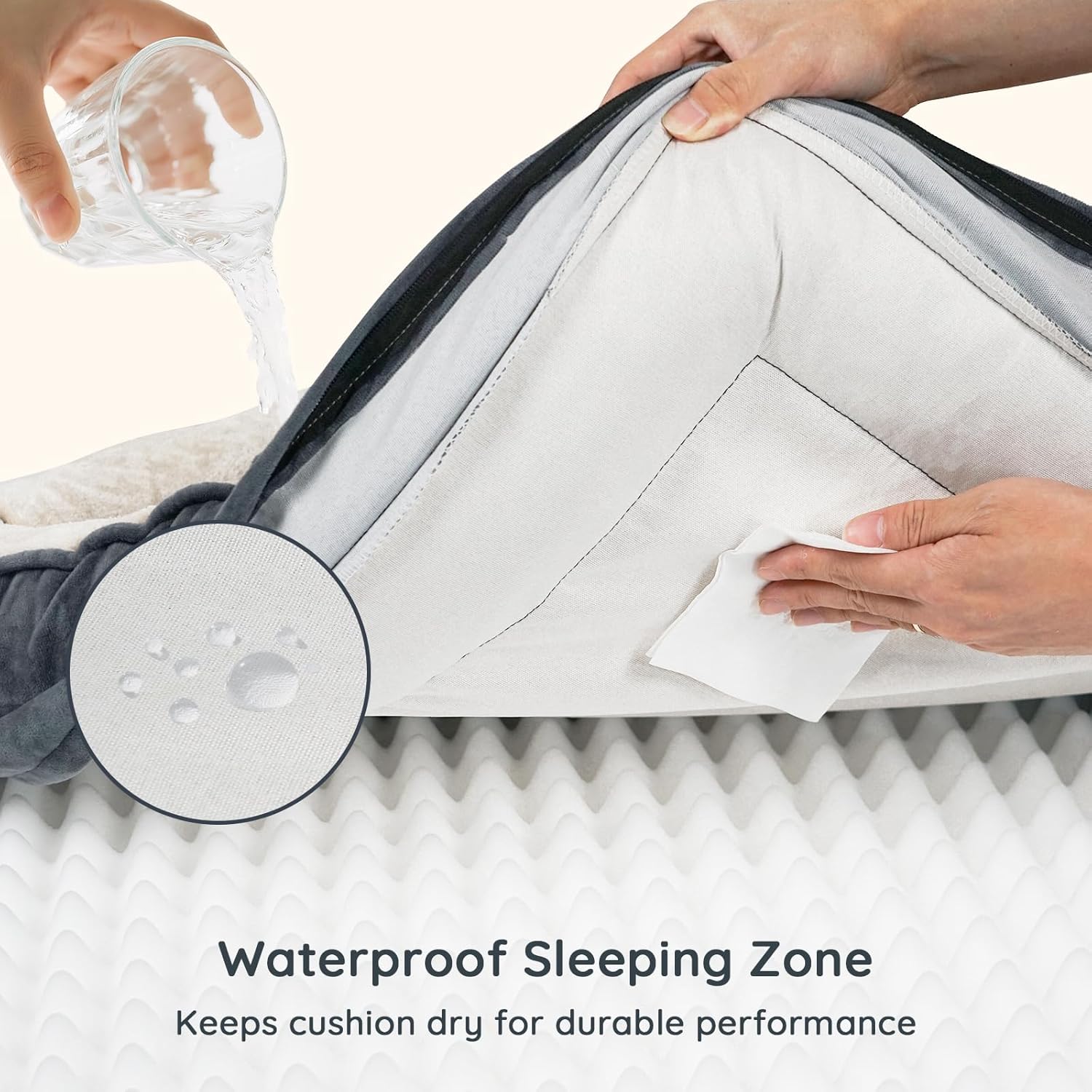 - 防水內襯可保護泡棉免受意外損壞。